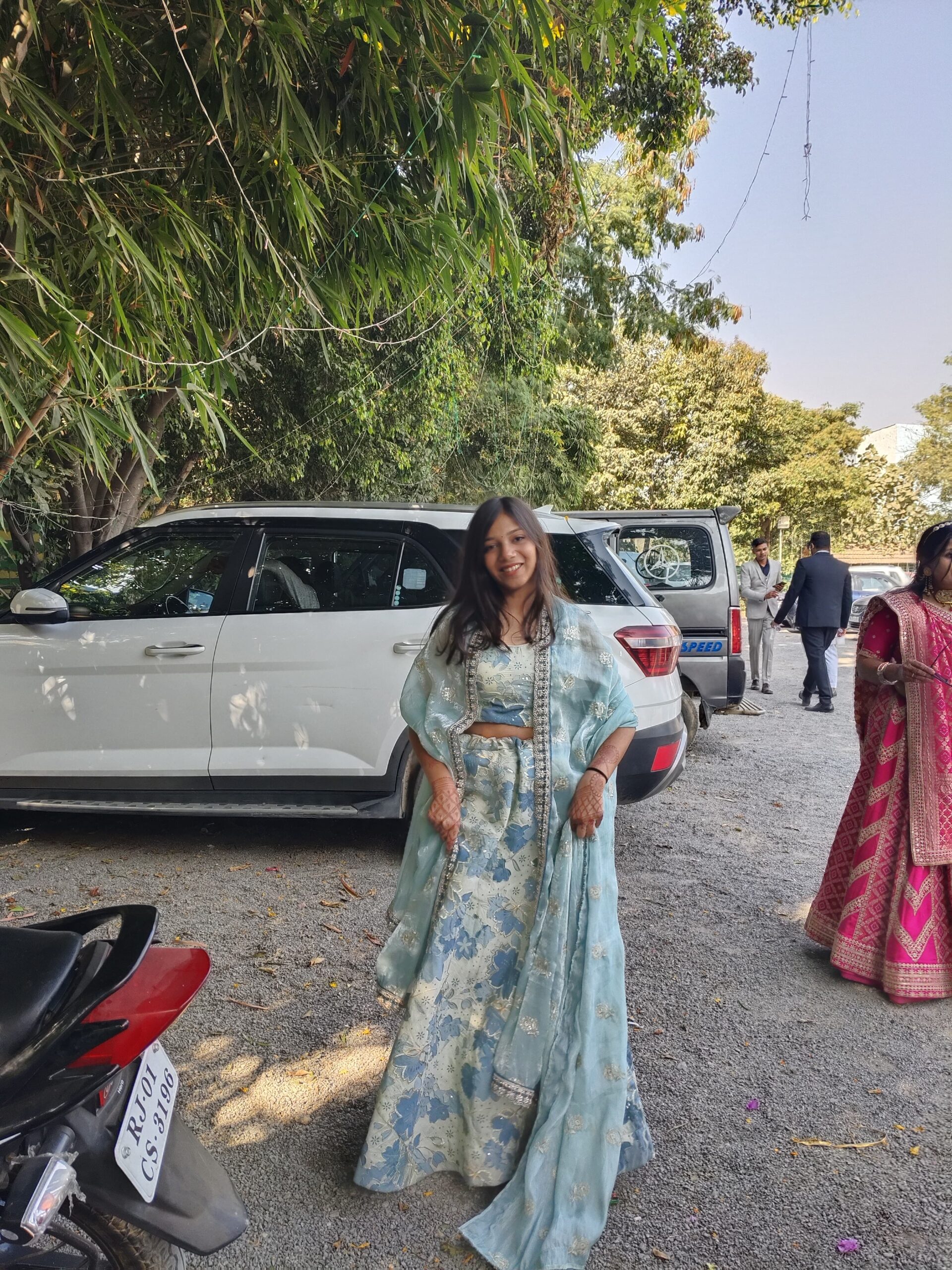 I rented this sky blue and white lehenga, and it was a total showstopper! The pastel shades looked so elegant and refreshing, and the embroidery was so intricate — it looked like a designer piece. Everyone kept asking me where I got it from! Loved how light and comfortable it was to wear all evening. Can’t wait to rent my next outfit from “AAKRITI BOUTIQUE”.