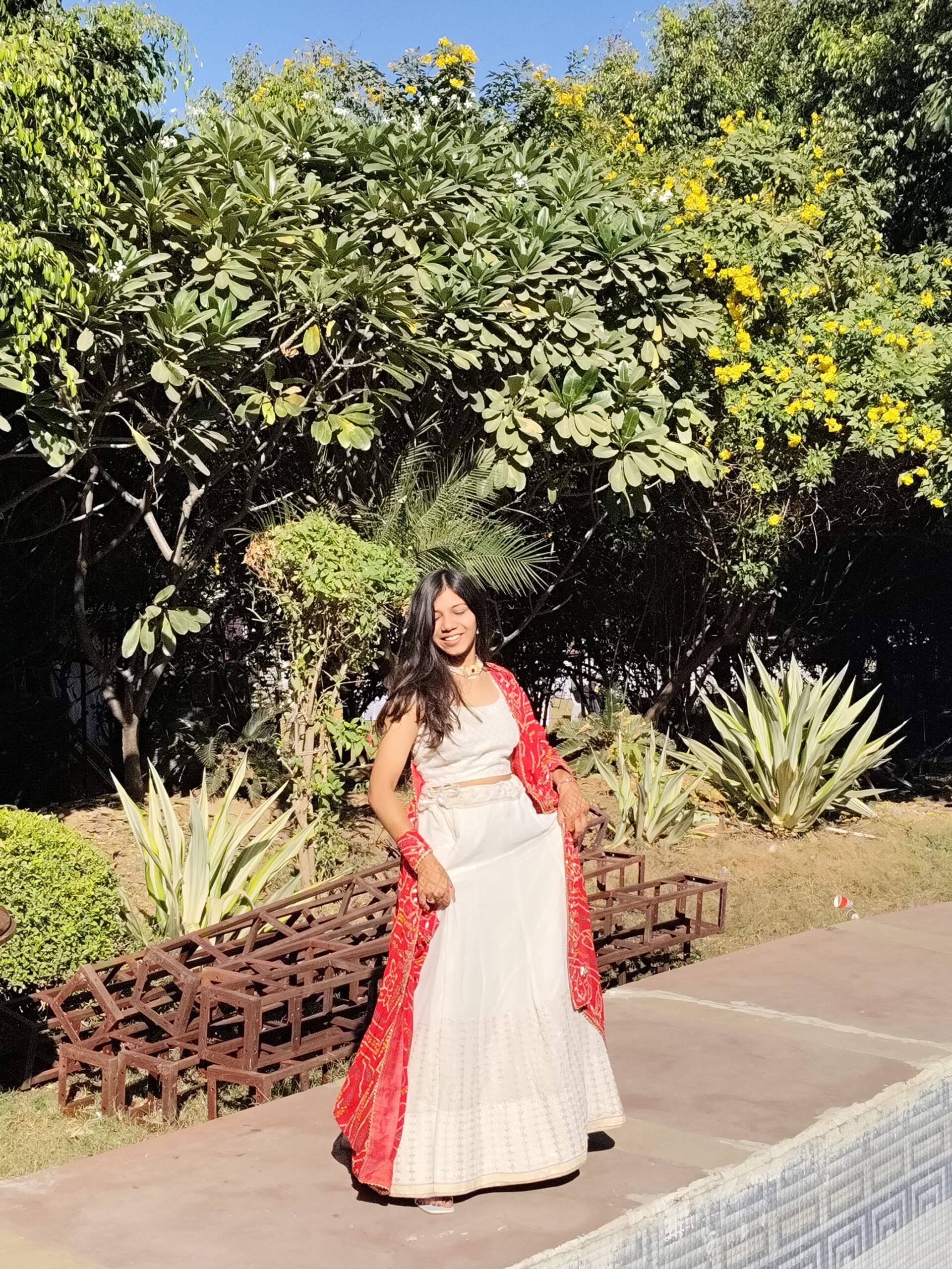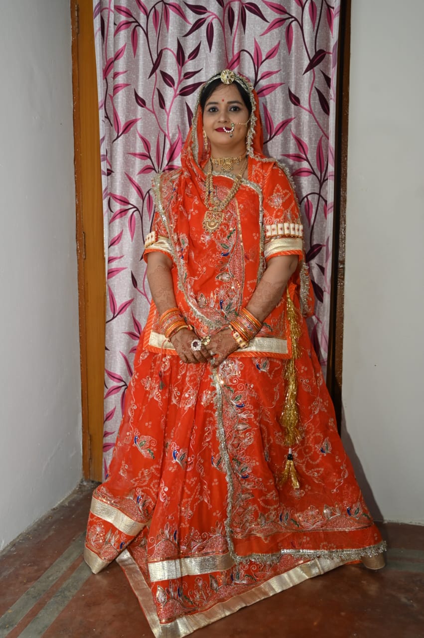 I rented this orange Rajputi poshak for a family wedding, and I truly felt like royalty. The detailing was exquisite — from the gota work to the vibrant color, everything was perfect. I received so many compliments! The fitting was spot on, and the entire rental process was seamless. Thank you “AAKRITI BOUTIQUE” for making me feel so special!